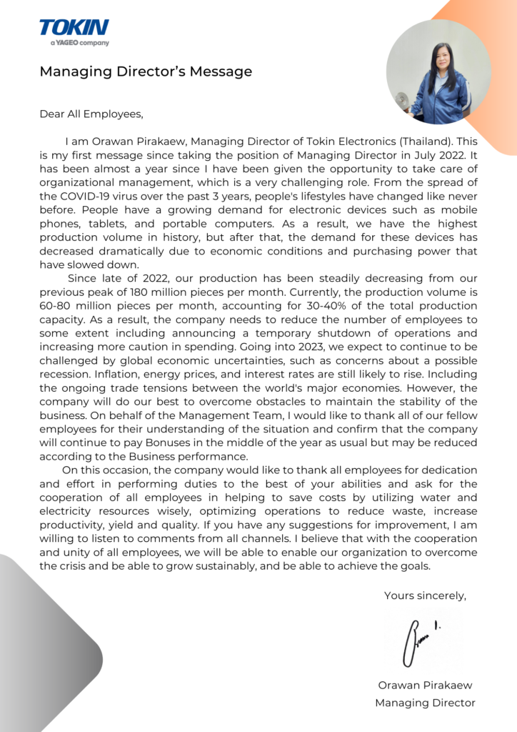 Welcome to the TOKIN Electronics (Thailand) website.